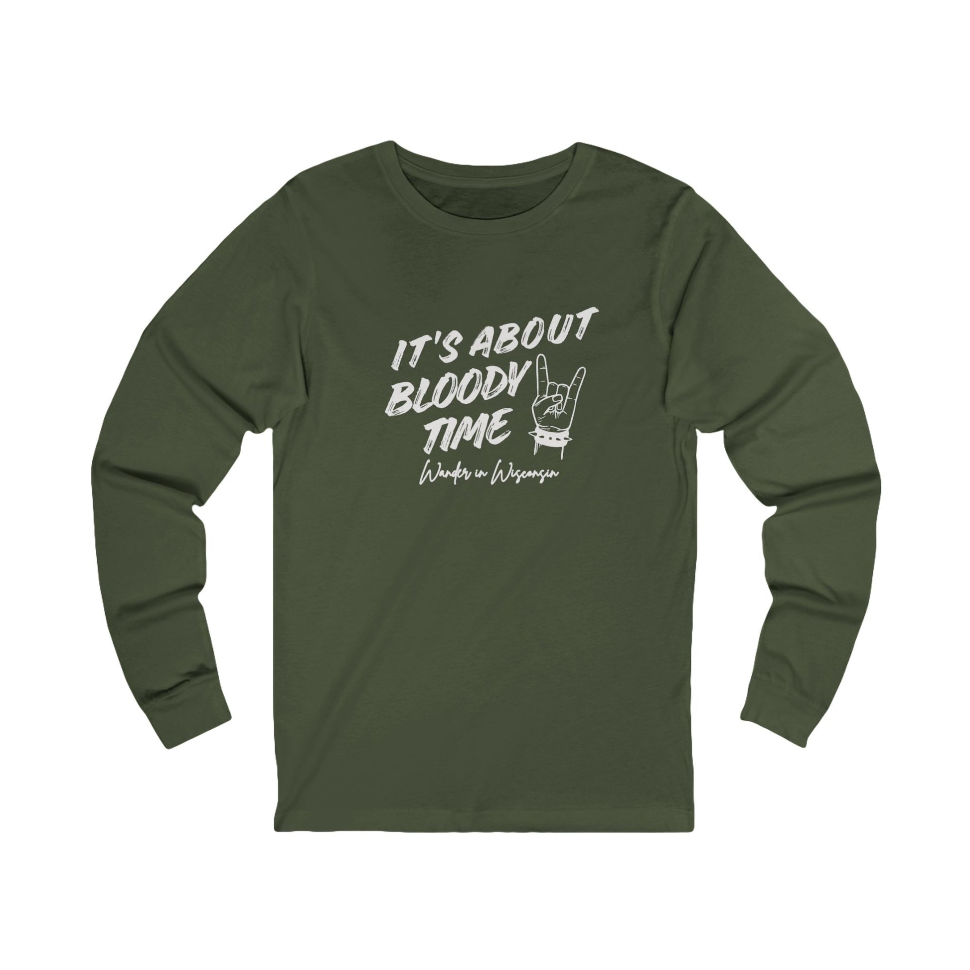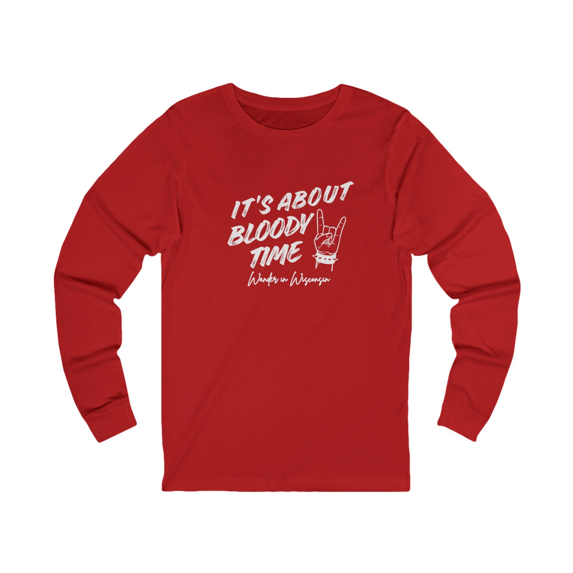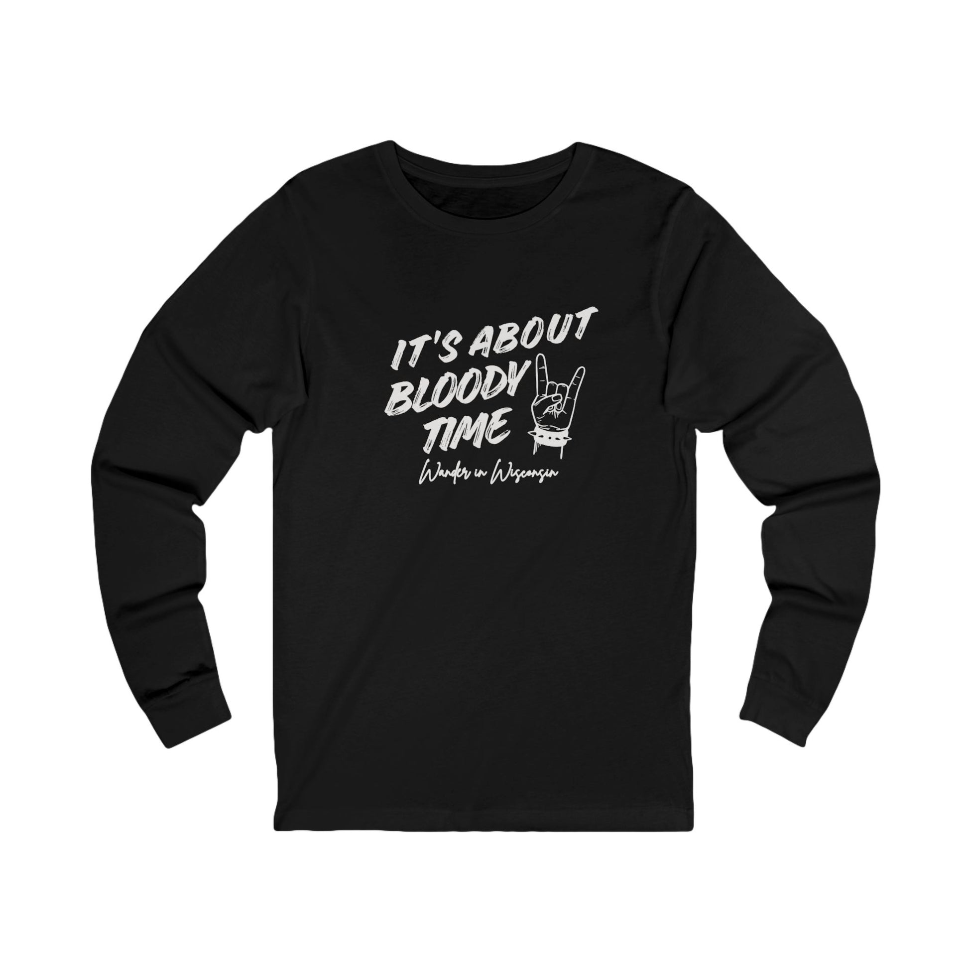 Long Sleeve Tee — "It's About Bloody Time" Rock N Roll Horns